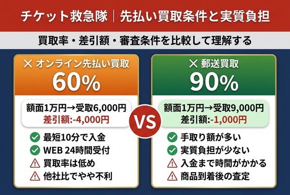 ここでは、チケット救急隊の先払い買取を利用する際の条件や、実質的な負担額について整理します。